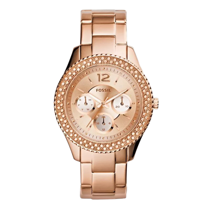 Fossil Stella Rose Gold Stainless Steel Rose Gold Dial Quartz Watch for Ladies - ES3590