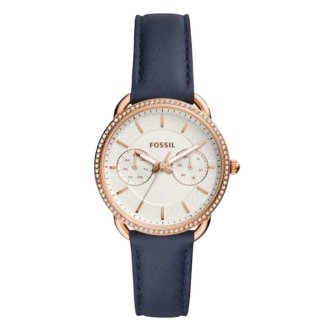 Fossil Tailor Multifunction Blue Leather Strap White Dial Quartz Watch for Ladies - ES4394