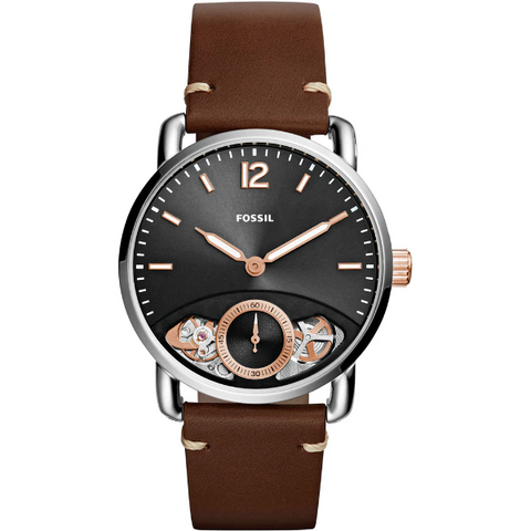 Add to WishlistFossil The Commuter Twist Brown Leather Strap Black Dial Automatic Watch for Gents - ME1165
