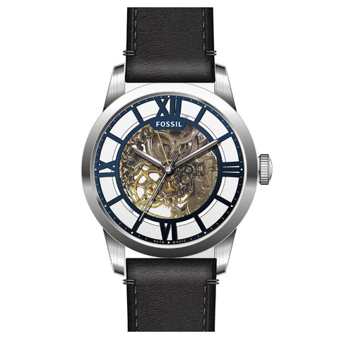 Fossil Townsman Black Leather Strap Skeleton Dial Automatic Watch for Gents - ME3200