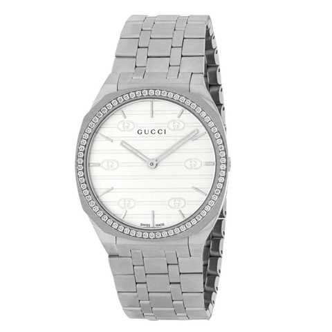 Gucci 25H Silver Stainless Steel Silver Dial Quartz Unisex Watch - YA163401