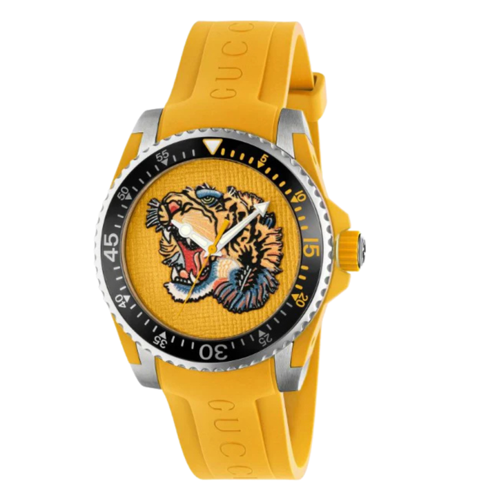 Gucci Dive Tiger Head Yellow Silicone Strap Yellow Dial Quartz Unisex Watch - GUCCI YA 136317