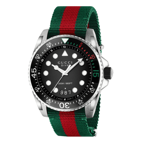 Gucci Dive Two-tone Leather Black Dial Quartz Watch for Gents - YA136209