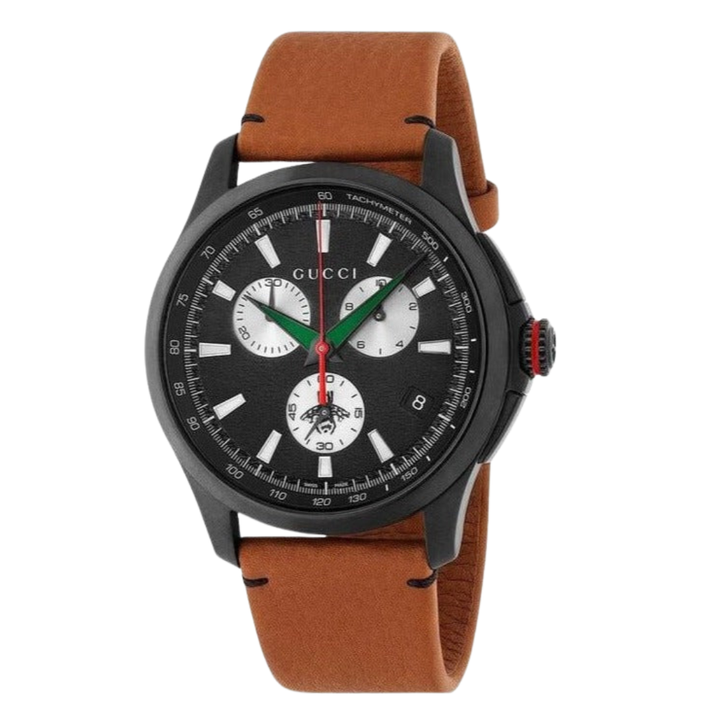 Gucci G-Timeless Brown Deer Leather Black Dial Chronograph Quartz Watch for Gents - YA126271