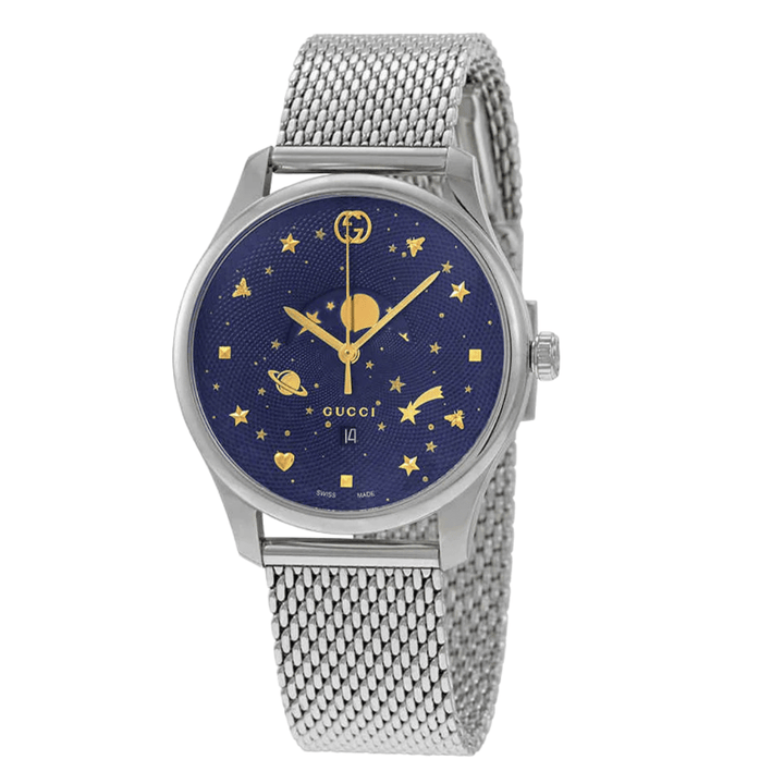 Gucci G-Timeless Moonphase Silver Mesh Bracelet Blue Dial Quartz Watch for Gents - GUCCI YA 126328