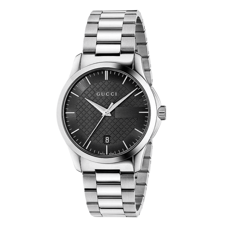 Gucci G-Timeless Silver Stainless Steel Black Dial Quartz Watch for Gents- GUCCI YA126457