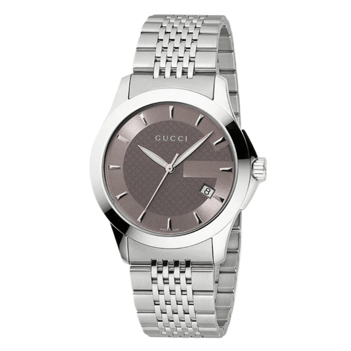 Gucci G Timeless Silver Stainless Steel Brown Dial Quartz Watch for Gents - YA126406