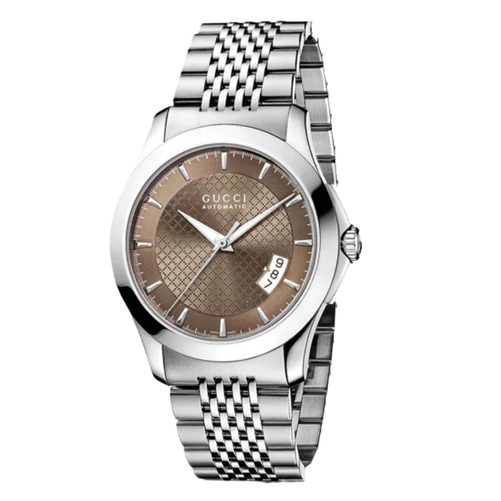 Gucci G-Timeless Silver Stainless Steel Brown Diamond Dial Automatic Watch for Gents - YA126412
