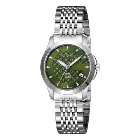 Gucci G-Timeless Silver Stainless Steel Green Dial Quartz Watch for Ladies - YA1265008