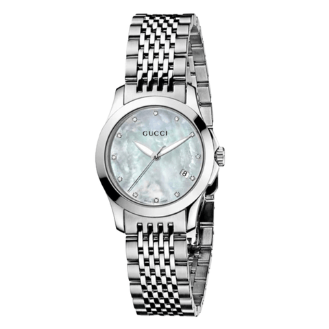 Gucci G Timeless Silver Stainless Steel Mother of pearl Dial Quartz Watch for Ladies - YA126504