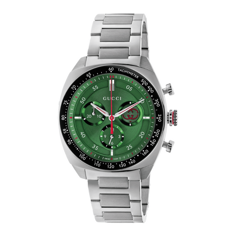 Gucci Interlocking Silver Stainless Steel Green Dial Chronograph Quartz Watch for Gents - YA142318