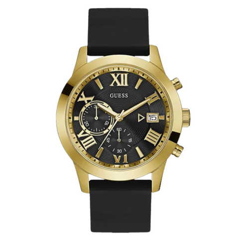 Guess Atlas Black Silicone Strap Black Dial Chronograph Quartz Watch for Gents - W1055G4