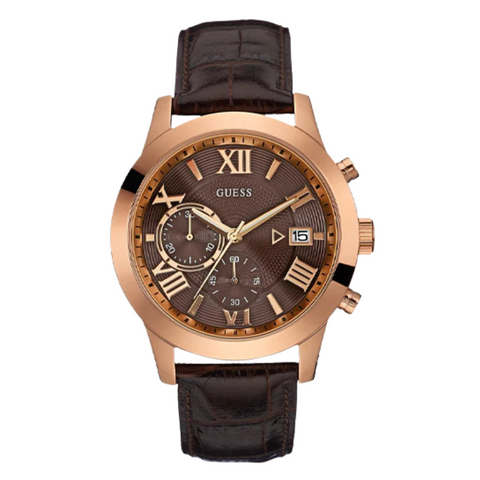 Guess Atlas Brown Leather Strap Brown Dial Chronograph Quartz Watch for Gents - W0669G1