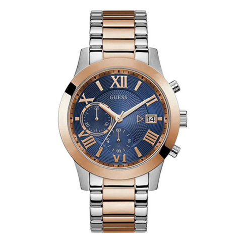 Guess Atlas Two-tone Stainless Steel Blue Dial Chronograph Quartz Watch for Gents - W0668G6