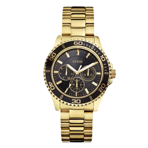 Guess BFF Multifunction Gold Stainless Steel Black Dial Quartz Watch for Ladies - W0231L3