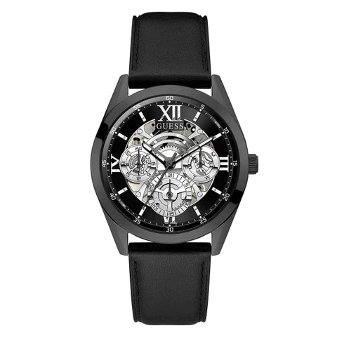 Guess Black Leather Strap Black Dial Quartz Watch for Gents - GW0389G4