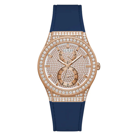 Add to WishlistGuess Blue Silicone Strap Rose Gold Dial Quartz Watch for Ladies - GW0439L4