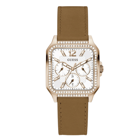 Add to WishlistGuess Brown Leather Strap White Dial Quartz Watch for Ladies - GW0309L3