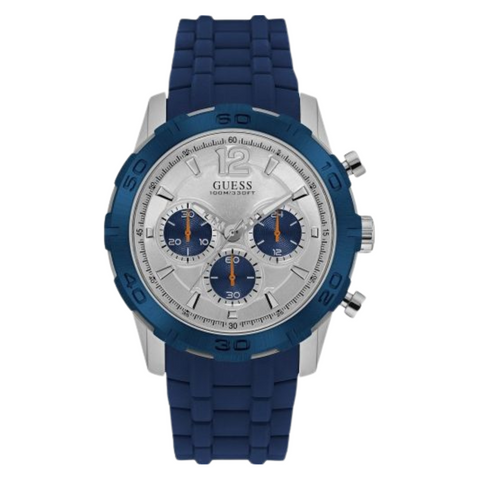 Guess Caliber Blue Silicone Strap White Dial Chronograph Quartz Watch for Gents - W0864G6