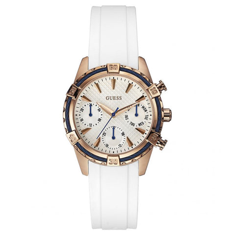Guess Catalina White Silicone Strap White Dial Chronograph Quartz Watch for Ladies - W0562L1