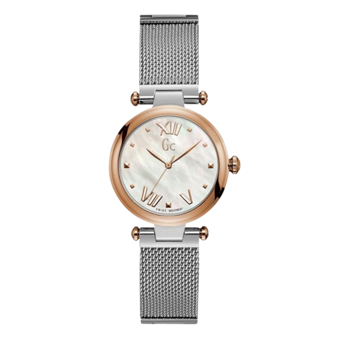 Guess Collection Pure Chic Silver Mesh Stainless Steel Mother of pearl Dial Quartz Watch for Ladies - Y31003L1