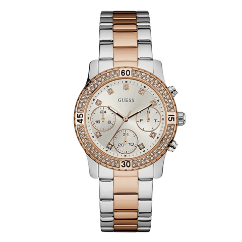 Guess Confetti Two-tone Stainless Steel Silver Dial Chronograph Quartz Watch for Ladies - W0851L3