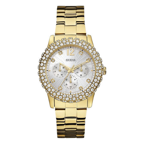 Guess Dazzler Gold Stainless Steel Silver Dial Quartz Watch for Ladies - W0335L2