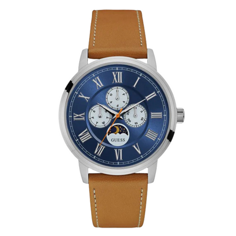 Guess Delancy Brown Leather Strap Blue Dial Quartz Watch for Gents - W0870G4