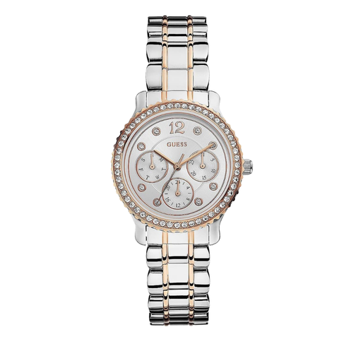 Add to WishlistGuess Enchanting Two-tone Stainless Steel Silver Dial Quartz Watch for Ladies - W0305L3