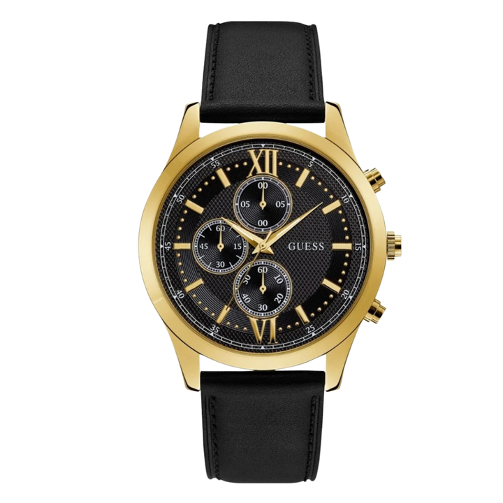 Guess Hudson Black Leather Strap Black Dial Chronograph Quartz Watch for Gents - W0876G5