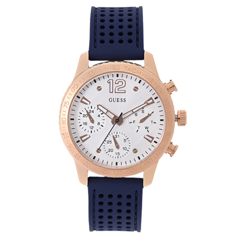 Guess Marina Blue Silicone Strap Silver Dial Chronograph Quartz Watch for Ladies - W1025L4