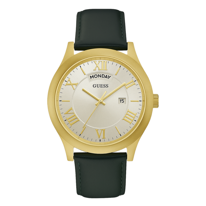 Guess Metropolitan Green Leather Strap Silver Dial Quartz Watch for Gents - W0792G9