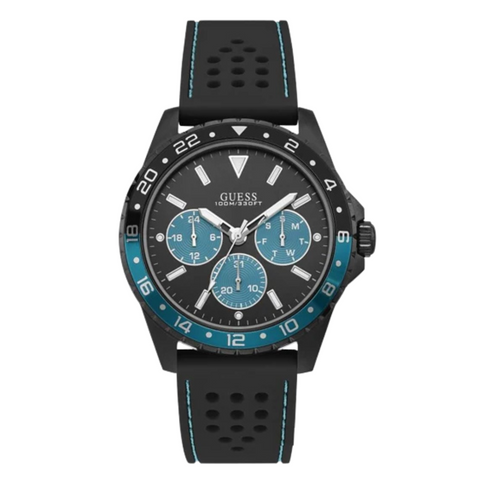 Guess Odyssey Black Silicone Strap Black Dial Quartz Watch for Gents - W1108G5