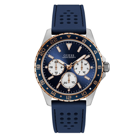 Guess Odyssey Blue Silicone Strap Blue Dial Quartz Watch for Gents - W1108G4