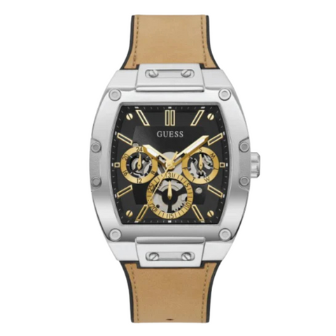Guess Phoenix Beige Leather Strap Black Dial Quartz Watch for Gents - GW0202G3