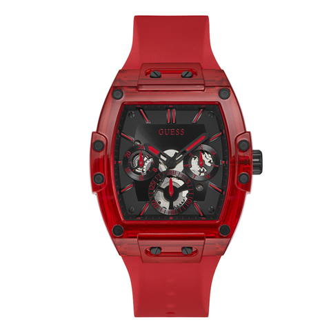 Guess Phoenix Red Silicone Strap Black Dial Quartz Watch for Gents - GW0203G5