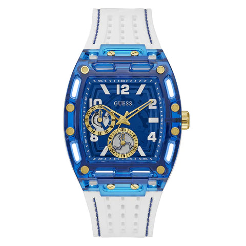 Guess Phoenix White Silicone Strap Blue Dial Quartz Watch for Gents - GW0499G6