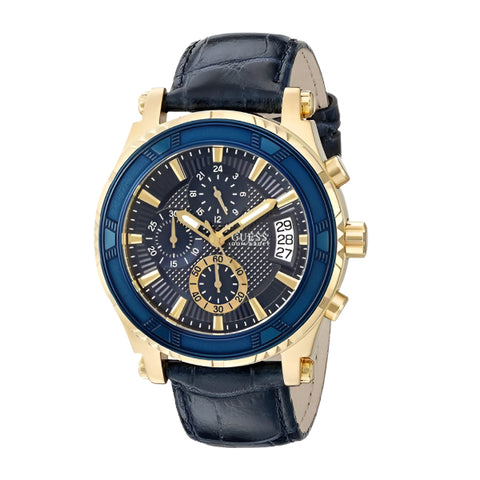 Guess Pinnacle Blue Leather Strap Blue Dial Chronograph Quartz Watch for Gents - W0673G2