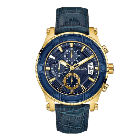 Add to WishlistGuess Pinnacle Blue Leather Strap Blue Dial Chronograph Quartz Watch for Gents - W0673G2
