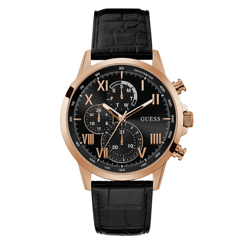 Guess Porter Black Leather Strap Black Dial Chronograph Quartz Watch for Gents - GW0011G3