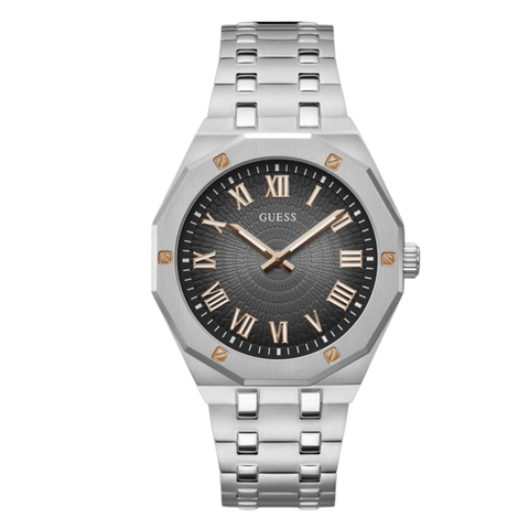 Guess Silver Stainless Steel Black Dial Quartz Watch for Gents - GW0575G1