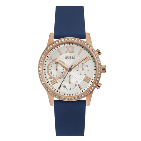 Guess Solar Blue Silicone Strap Silver Dial Chronograph Quartz Watch for Ladies - W1135L3