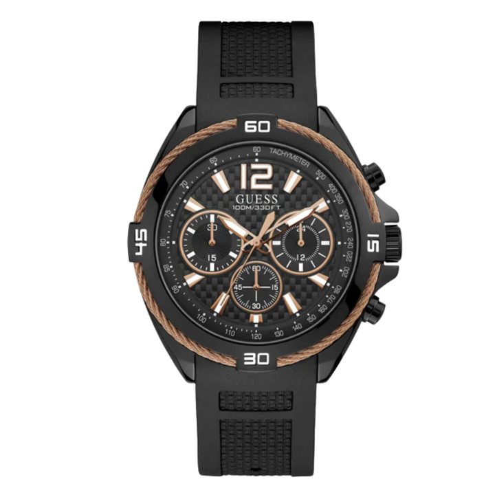 Guess Surge Black Silicone Strap Black Dial Chronograph Quartz Watch for Gents - W1168G3