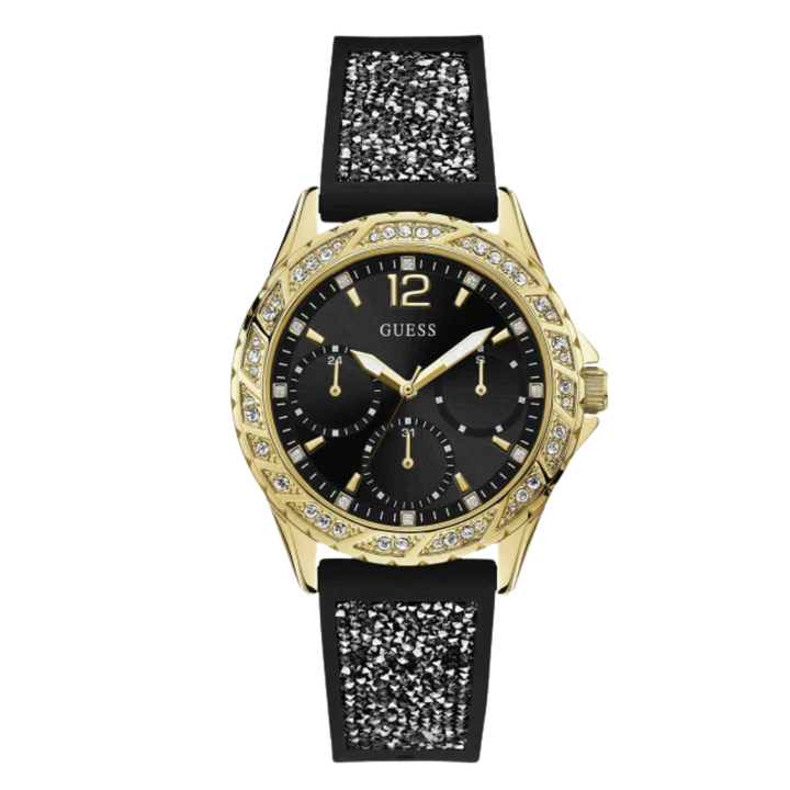 Guess Swirl Black Silicone Strap Black Dial Quartz Watch for Ladies - W1096L3
