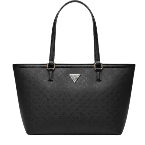 Guess Tote Bag Black Logo Print Faux Leather (Style Tote Bag)