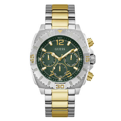 Guess Traction Two-tone Stainless Steel Green Dial Chronograph Quartz Watch for Gents - G0800G1
