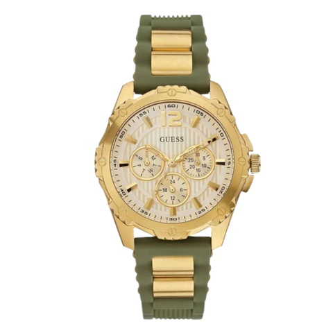 Add to WishlistGuess Turquoise Olive Green Silicone Strap Gold Dial Chronograph Quartz Watch for Ladies - W0325L5
