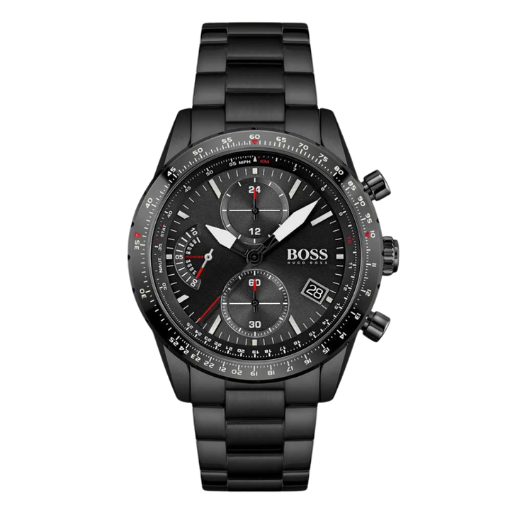 HUGO BOSS Aero Black Stainless Steel Black Dial Chronograph Quartz Watch for Gents - 1513771