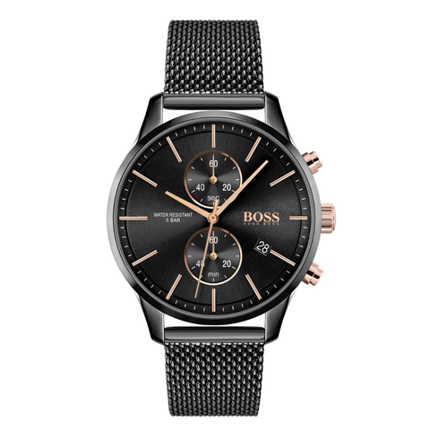 HUGO BOSS Associate Black Mesh Bracelet Black Dial Chronograph Quartz Watch for Gents - HUGO BOSS 1513811