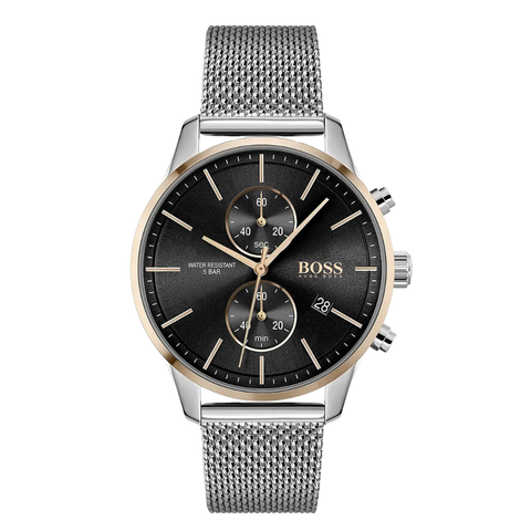 HUGO BOSS Associate Silver Stainless Steel Black Dial Chronograph Quartz Watch for Gents - 1513805